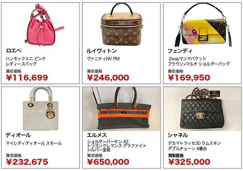 - 各ブランドに精通した専門査定士が、素材・カラー・付属品など細部までしっかり評価