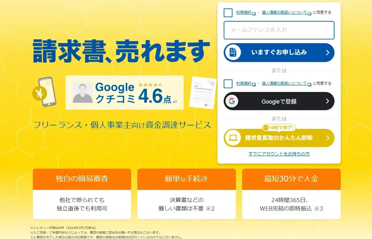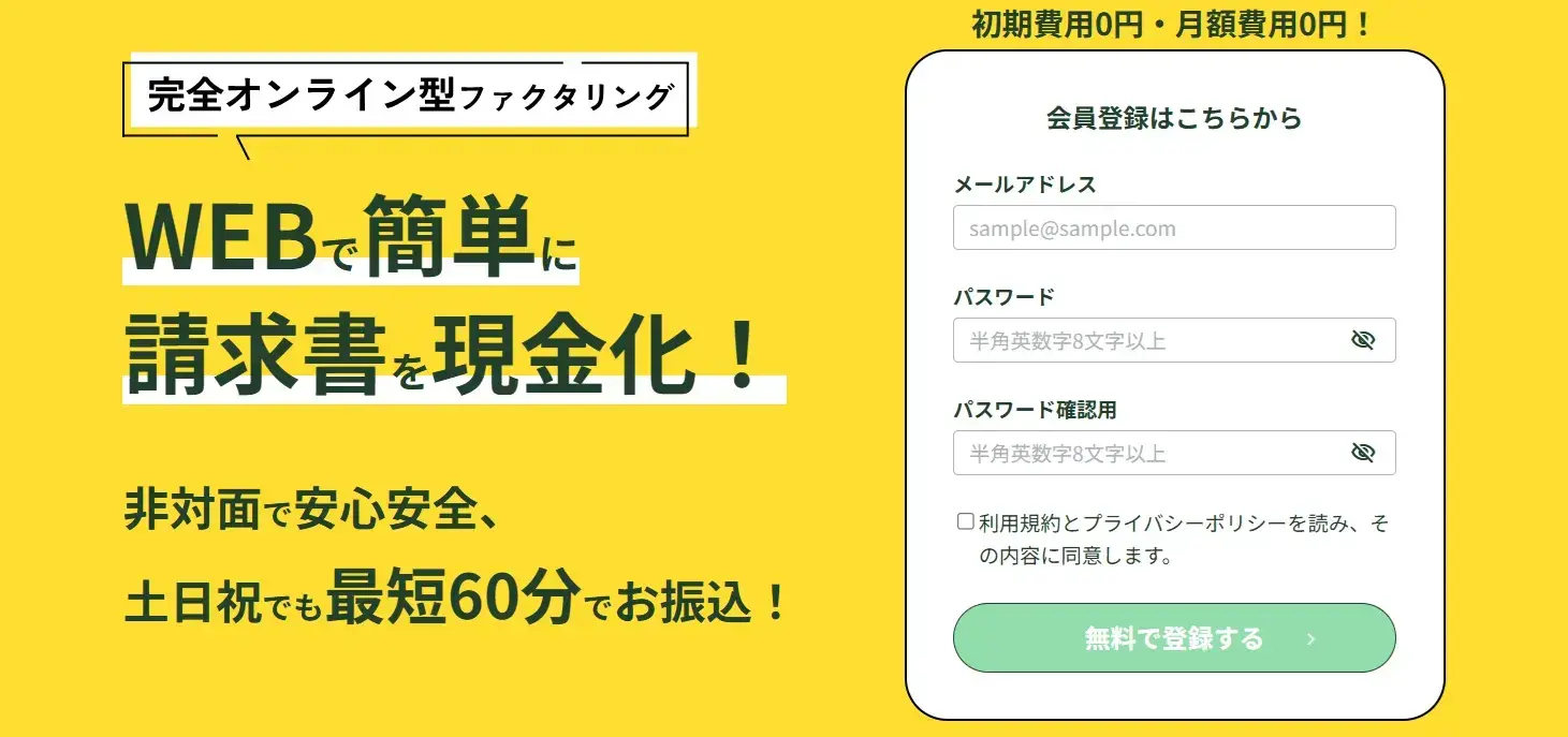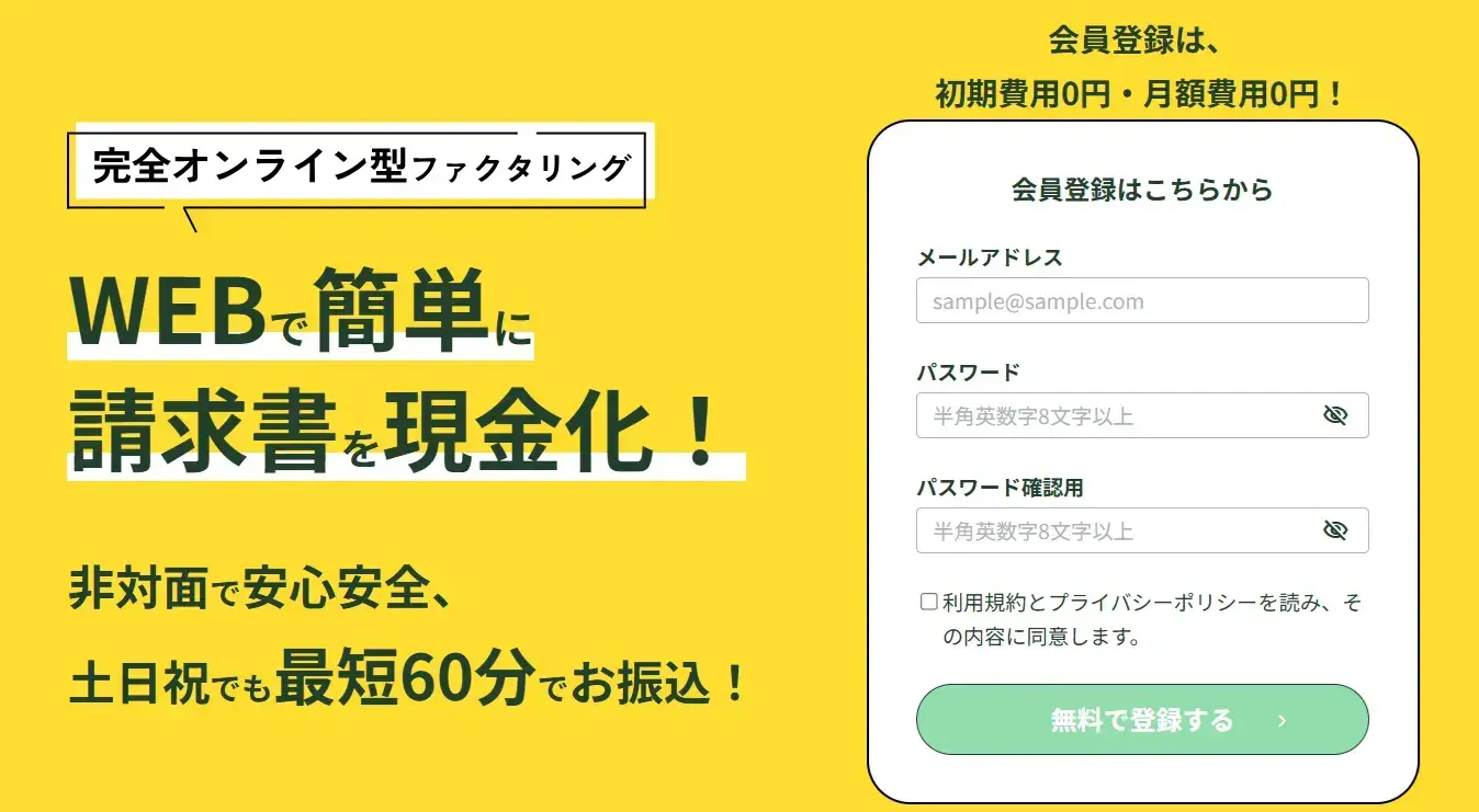 完全オンライン型ファクタリングのみんなのファクタリング。スピード振込が特徴です。