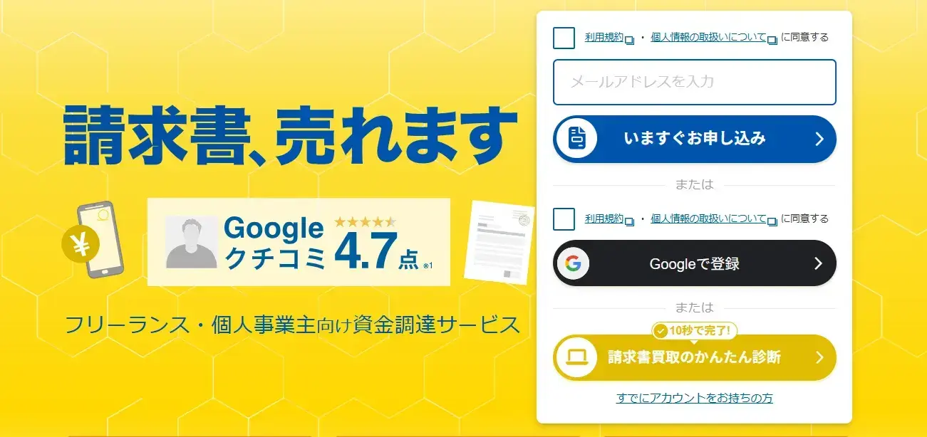 決算書・事業計画不要で、赤字や税金滞納関係なしなので、利用しやすいファクタリングです。