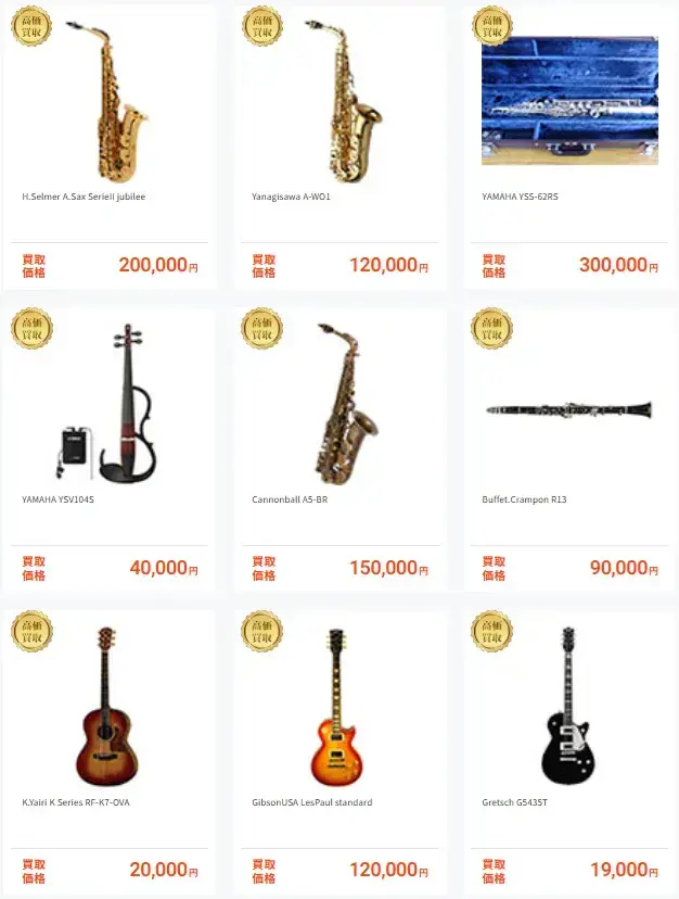 私、妻、息子がそれぞれ使っていた楽器がたくさんあり、今回の引越しを機会に処分することにしました。思ったより高額となり、家族旅行に行けそうです。またぜひお願いしますね!