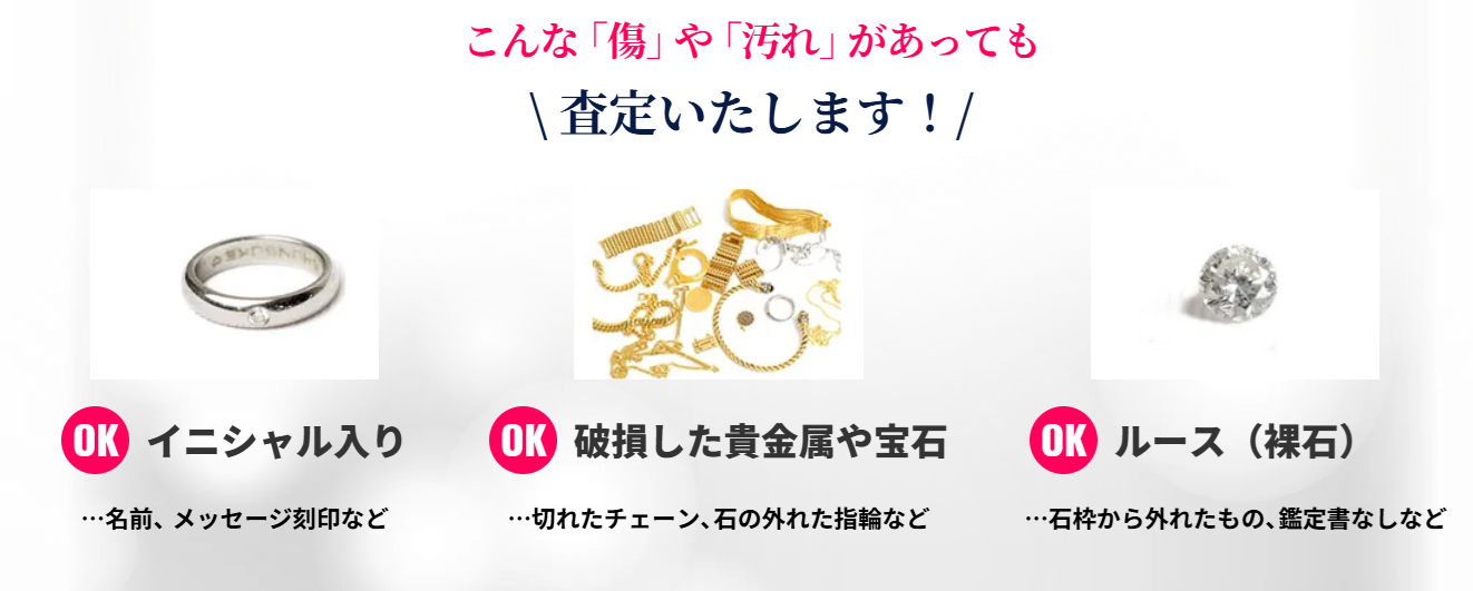また、素材が不明だったり、他店で値段が付かないと言われた宝石でも査定してもらえるため、価値の分からない宝石をお持ちの場合はこちらに申し込むと良いかと思います。