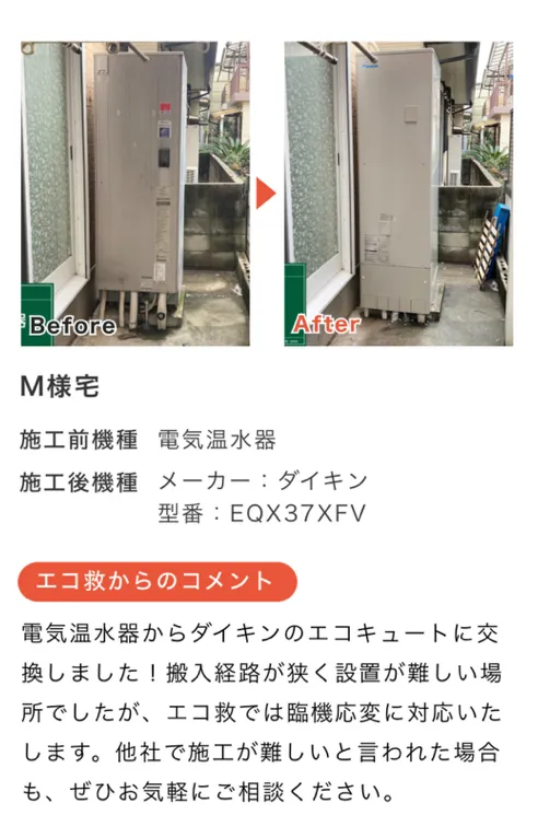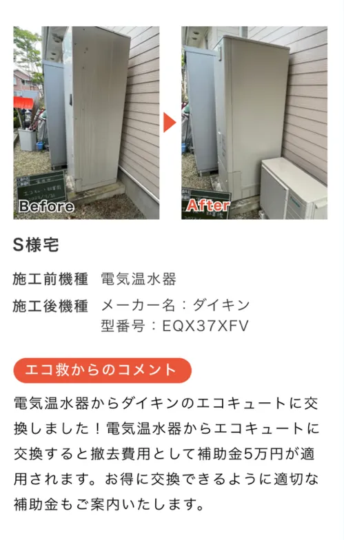 - エコキュート設置の補助金対応可能