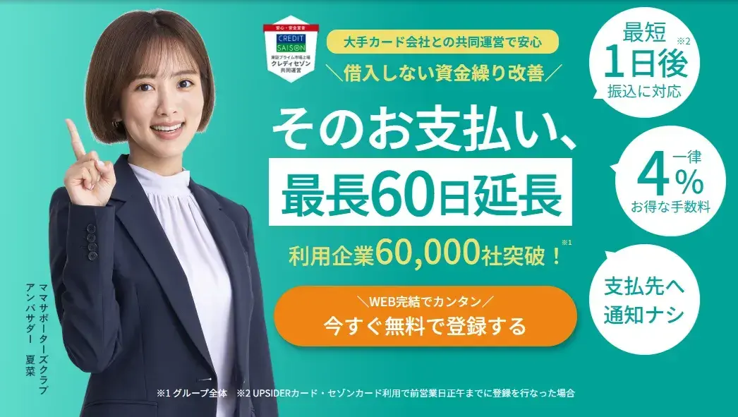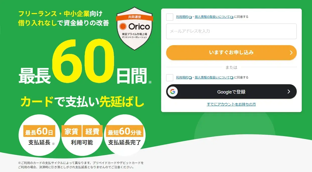 資金繰りの困ったタイミングで、支払いを1ヶ月伸ばせるのは大きくとても助かってます。