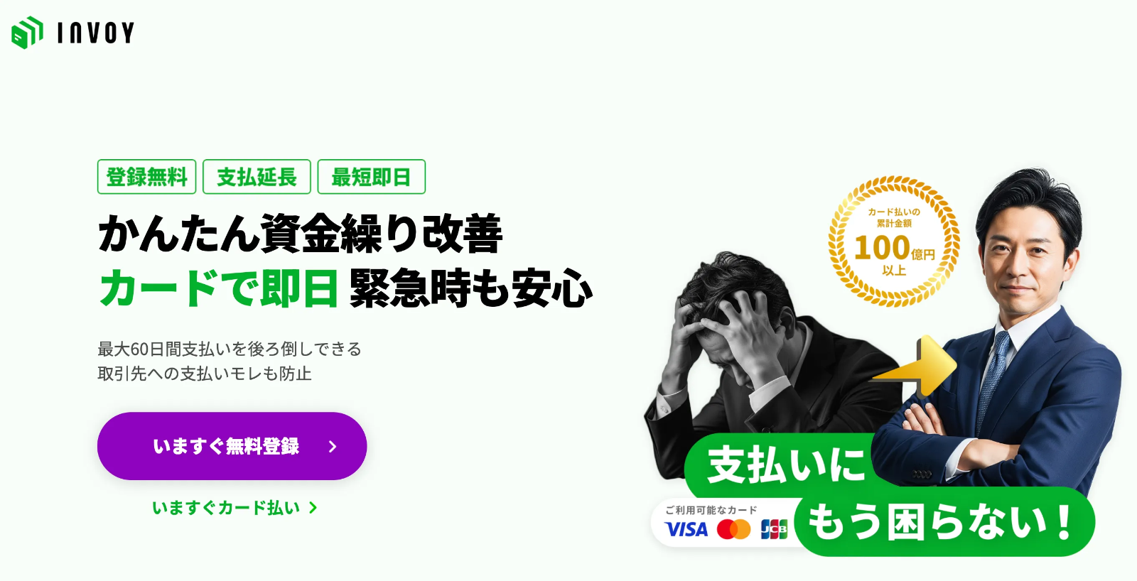 - INVOYカード払いを利用することによって、入金サイトに縛られずに円滑な支払いができて助かっています。