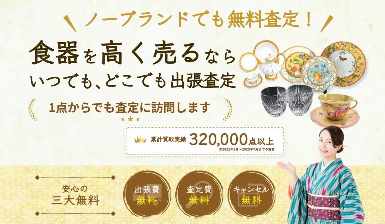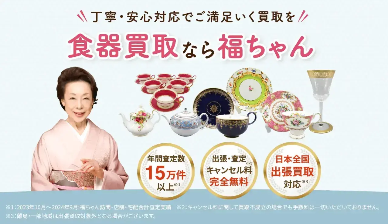 福ちゃんの素晴らしいところは、査定員さんのレベルの高さです。知識豊富な査定員さんが揃っているので、洋食器はもちろん、有田焼などの和食器の買取にも強く、大切な食器の価値をしっかりと見定めてもらうことができます。また、買取した食器を自社で販売したり、自社利益を減らして数で勝負するというお客様ファーストな姿勢で対応してくださるので、他より高く売れる可能性が高いです。