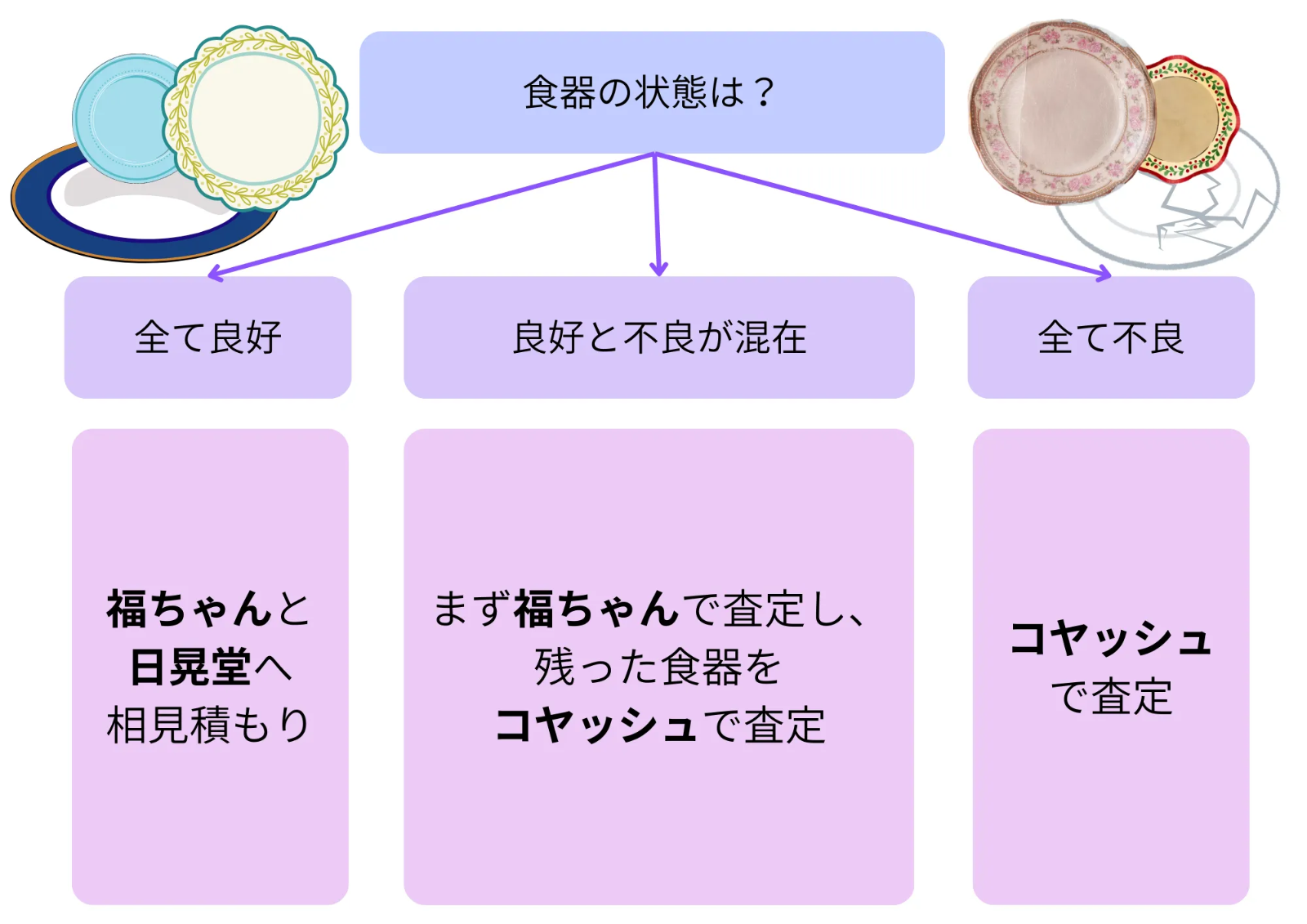 査定員 ○ 食器専門鑑定士 |