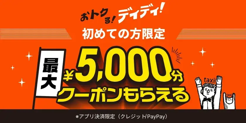 5,000円offクーポンや最大30%offキャンペーンなど、たくさんのクーポンを配布しているDiDi。